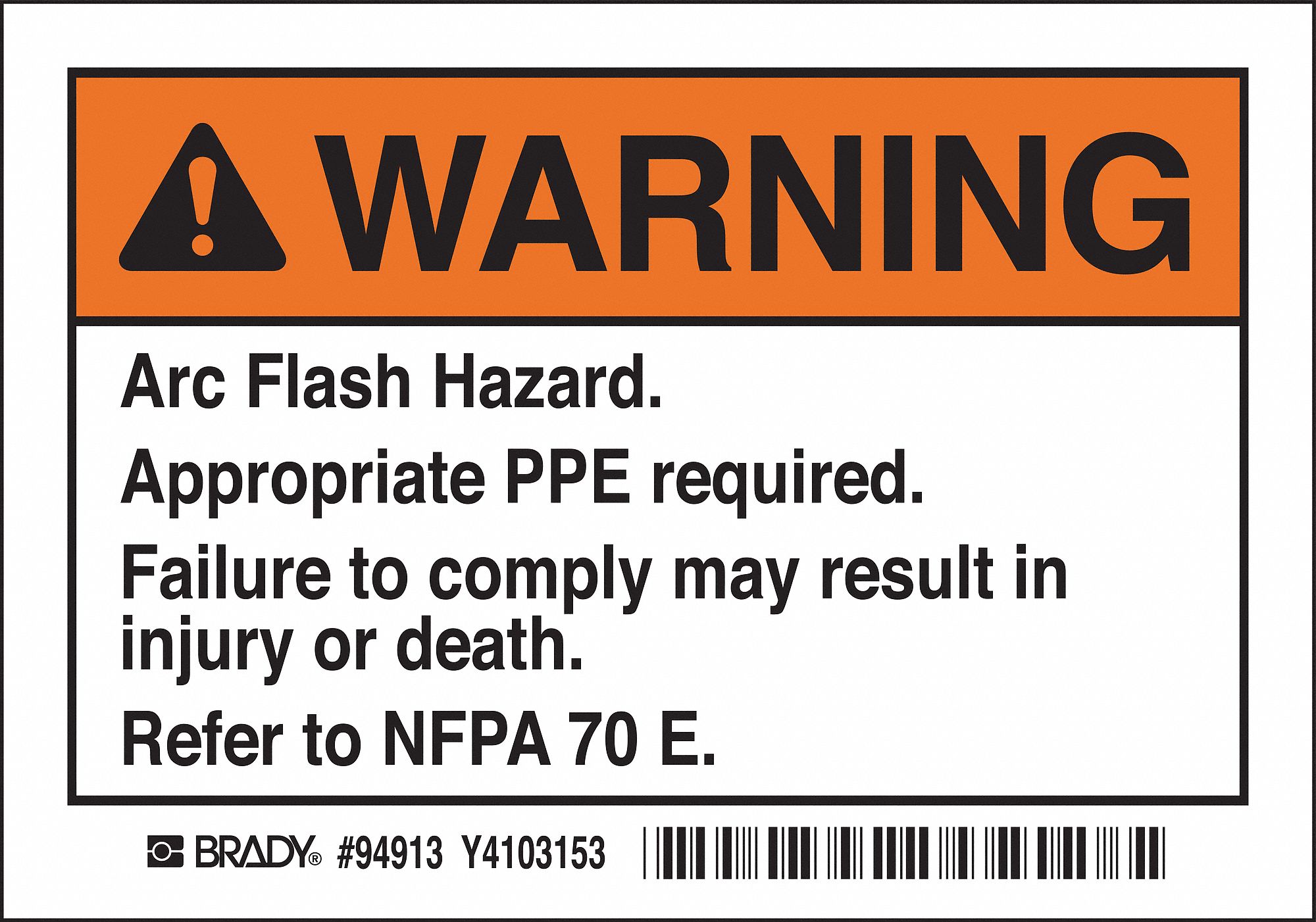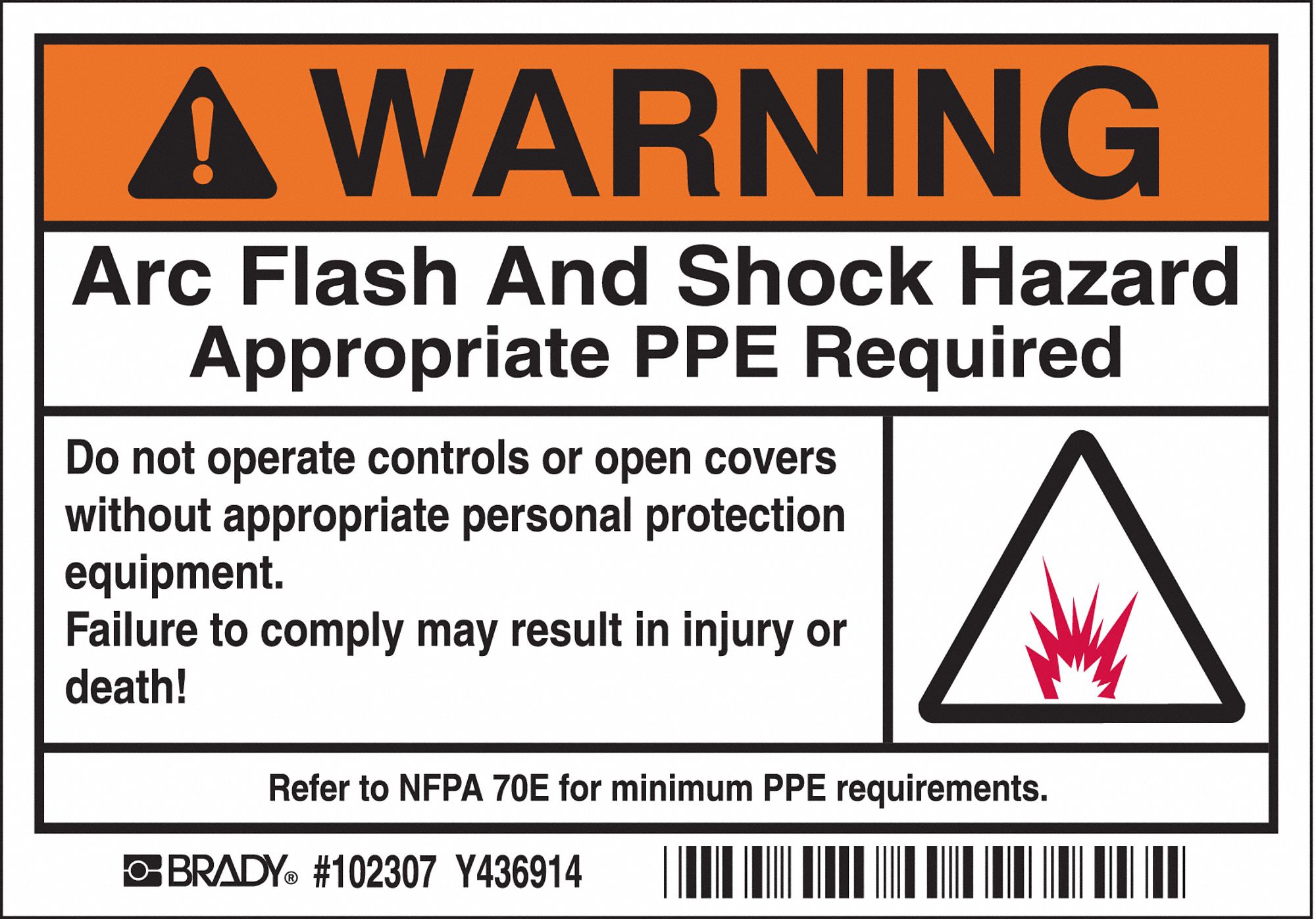 Amazon Com Brady El 5 Vinyl Arc Flash Warning Labels Black Orange On White 3 1 2 Height X 5 Width Legend Warning Arc Flash And Shock Hazard Appropriate Ppe Required List 5 Labels