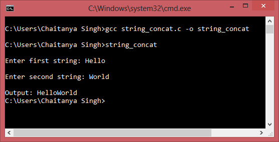 C Program To Concatenate Two Strings Without Using Strcat