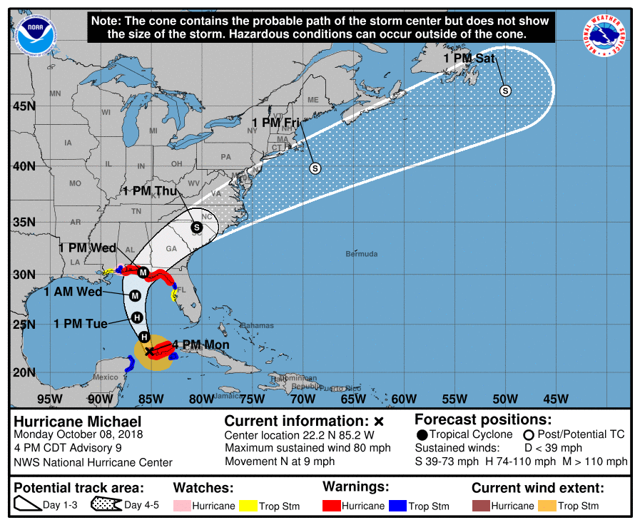 Updated Trajectory For Hurricane Michael From Noaa As Of 5pm Est