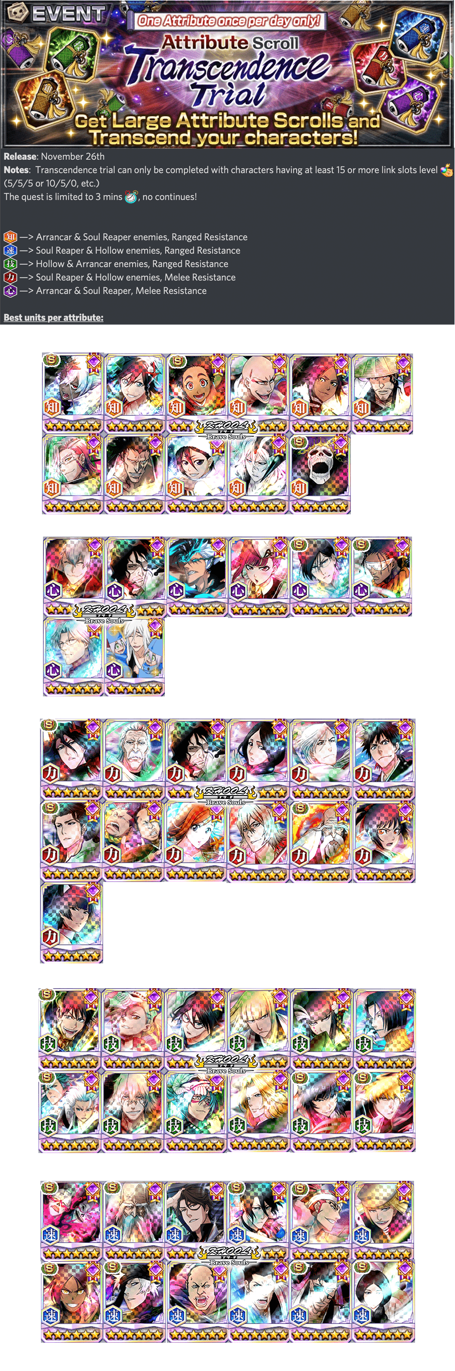 Transcendence Trial Guide Best Units Attributes